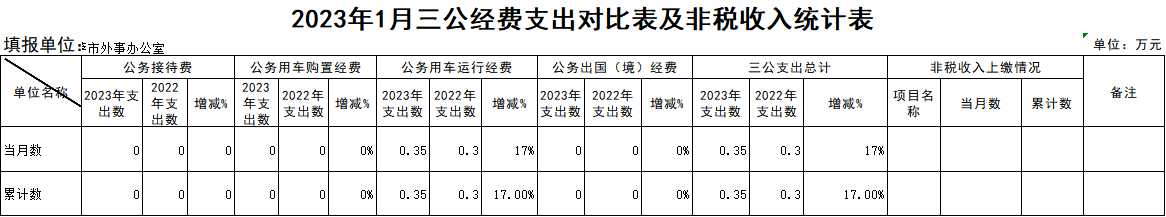 2023年1月三公经费支出对比表及非税收入统计表